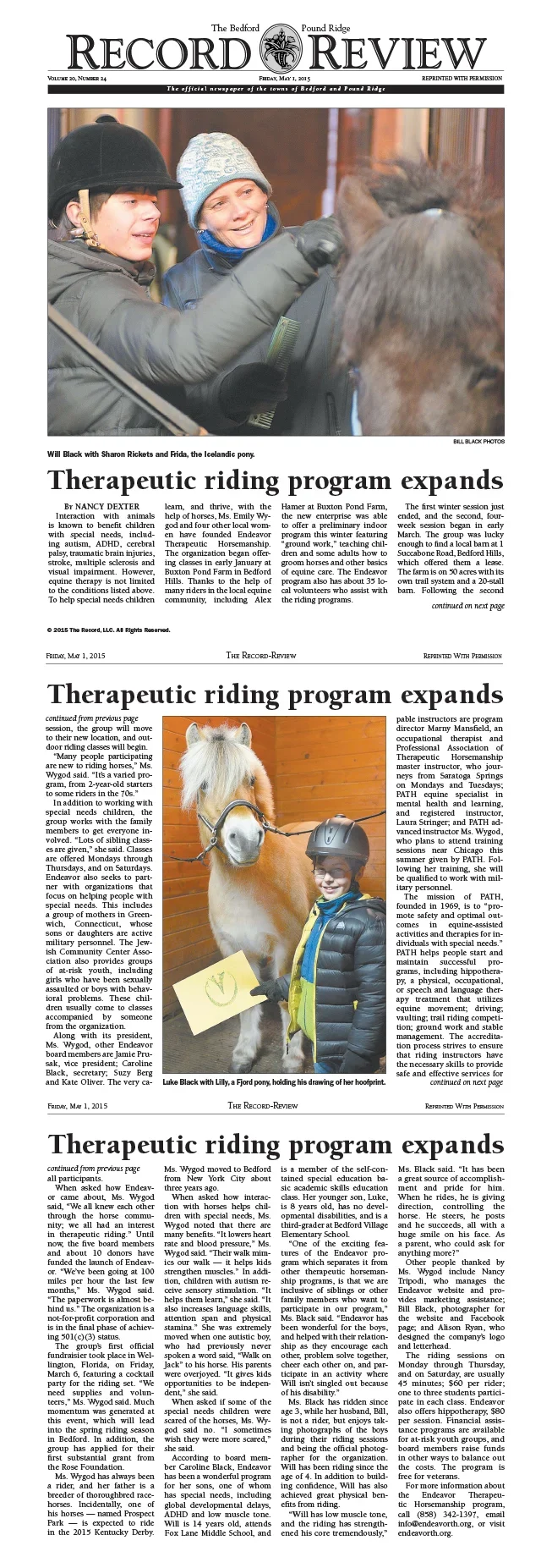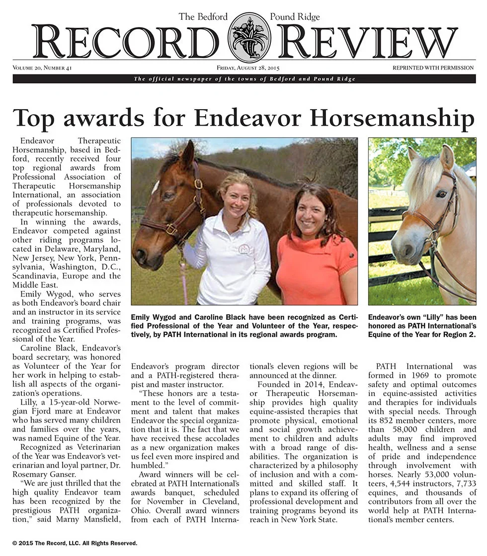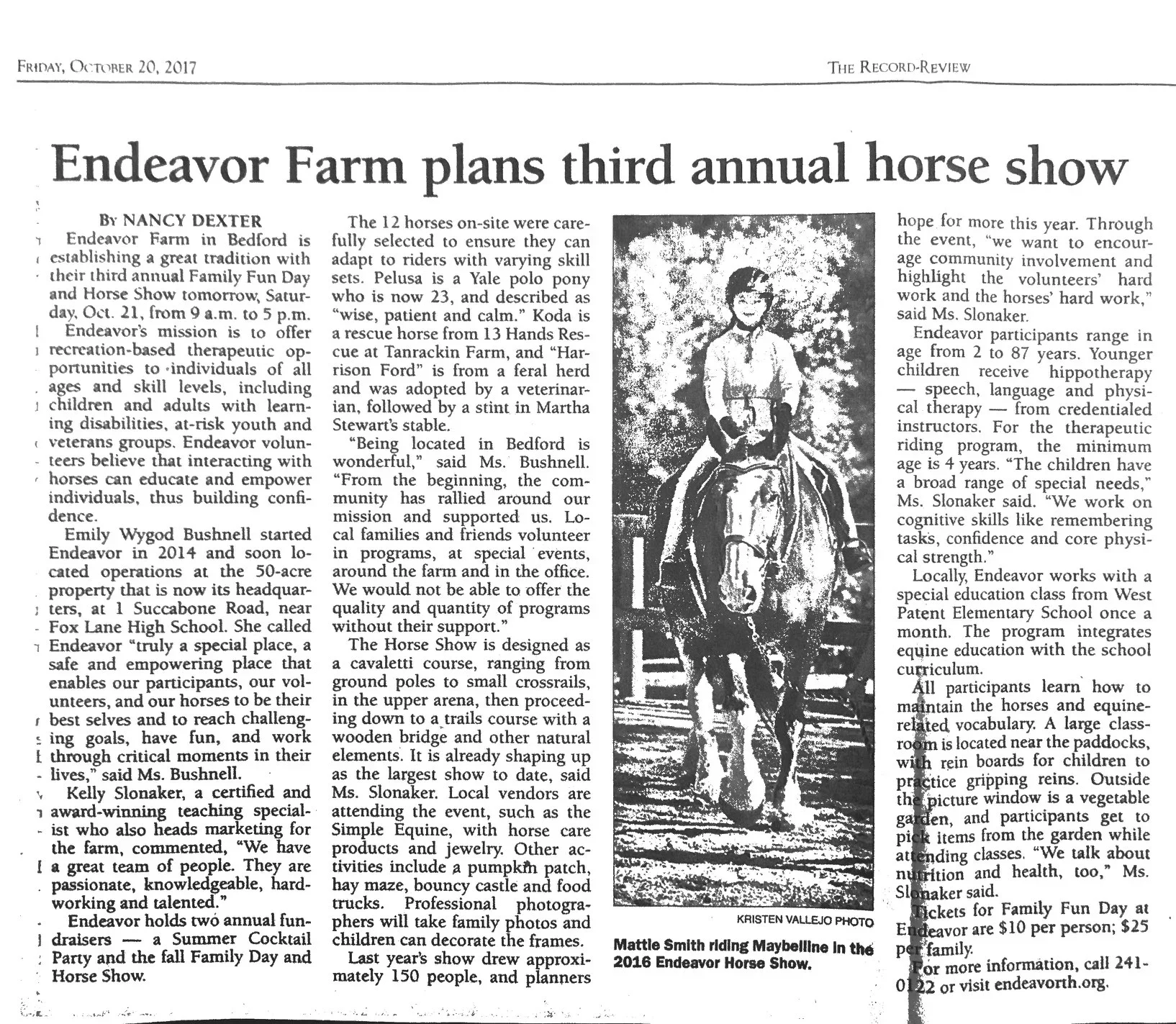 The Record Review featured an article on Endeavor's Family Fun Day and Third Annual Horse Show in October 2017.