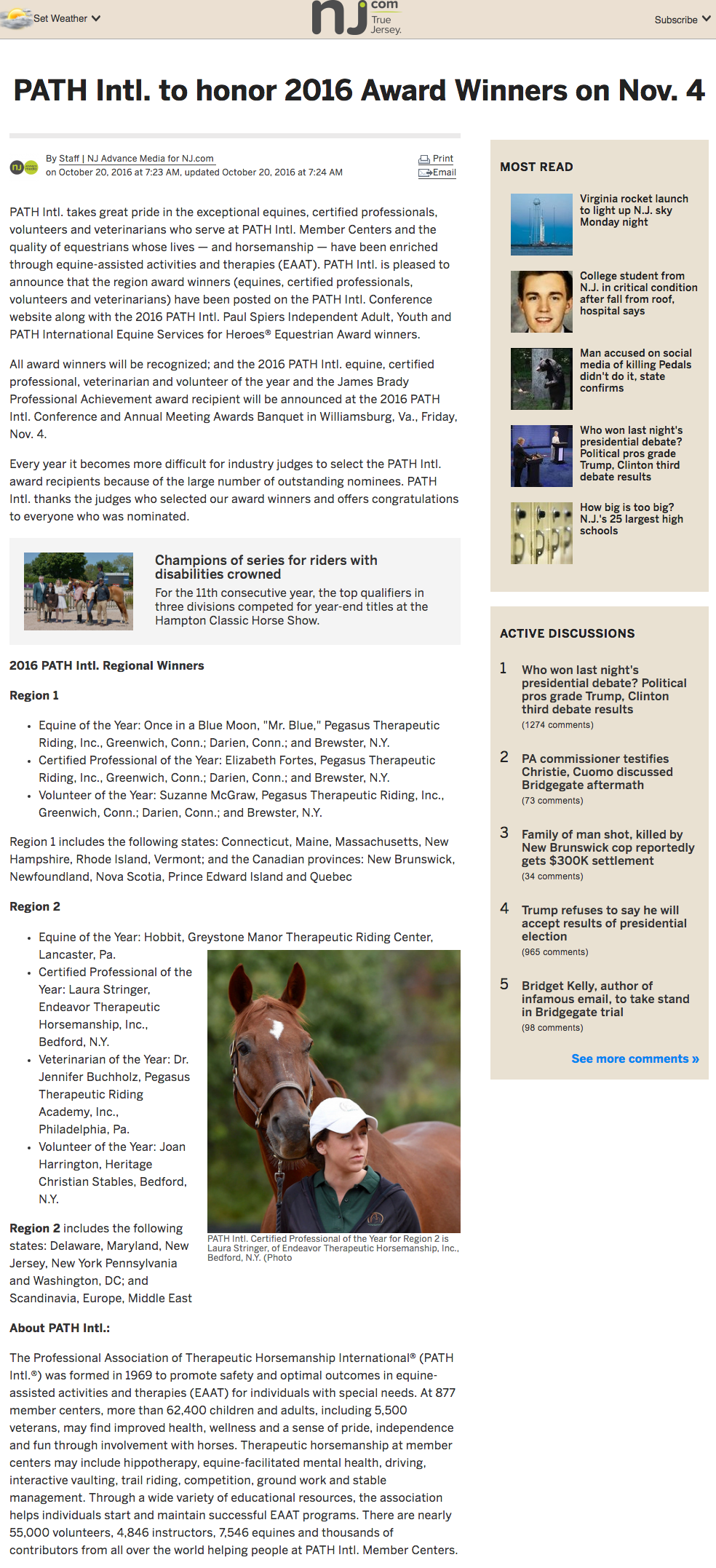 NJ.com featured Endeavor's Special Programs Manager, Laura Stringer, in October, 2016.