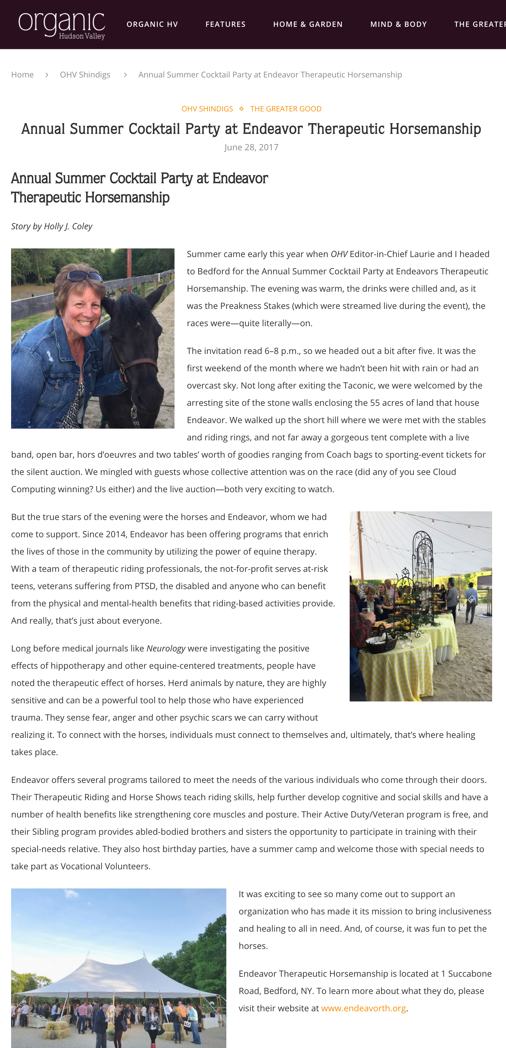Organic Hudson Valley featured Endeavor's Third Annual Summer Cocktail Party in an online article in June, 2017.