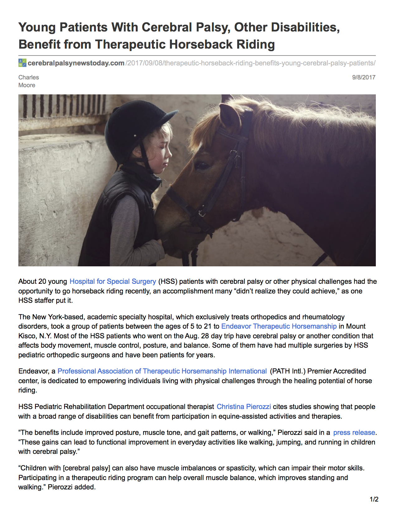 Cerebral Palsy News Today featured Endeavor in an article in September 2017.