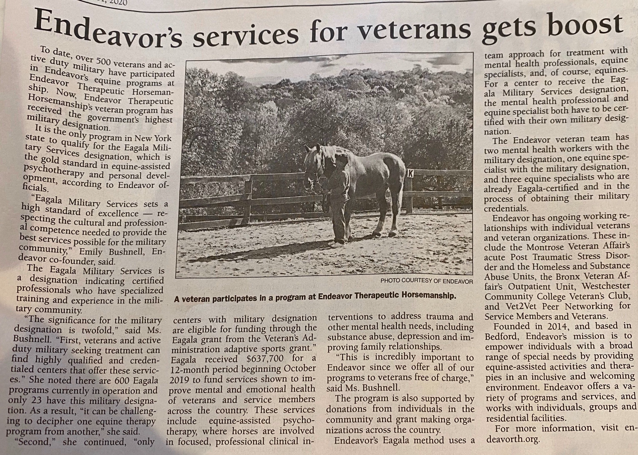 The Record Review features Endeavor Receiving the EAGALA Military Designation; January 2020