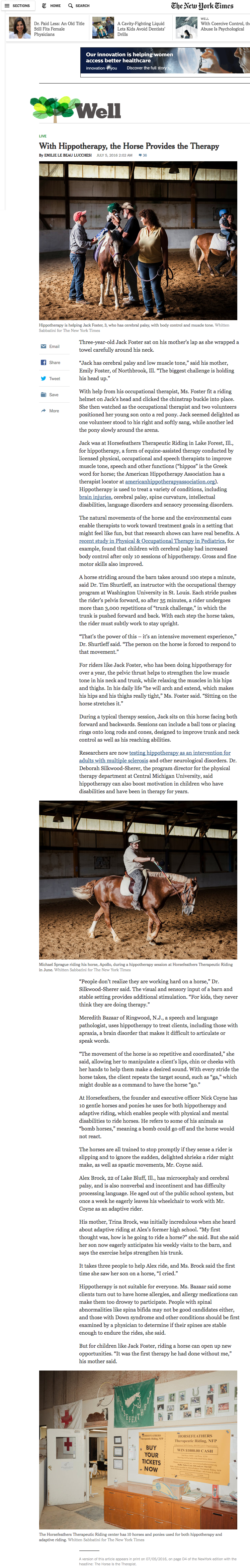 The New York Times featured Endeavor's Speech/Language Pathologist, Meredith Bazaar, in July, 2016.