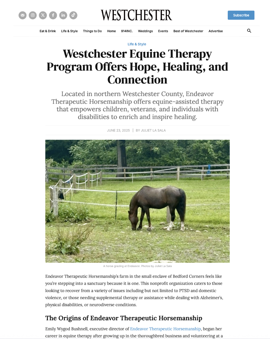 Westchester Magazine featuring Endeavor Farm - June 2025