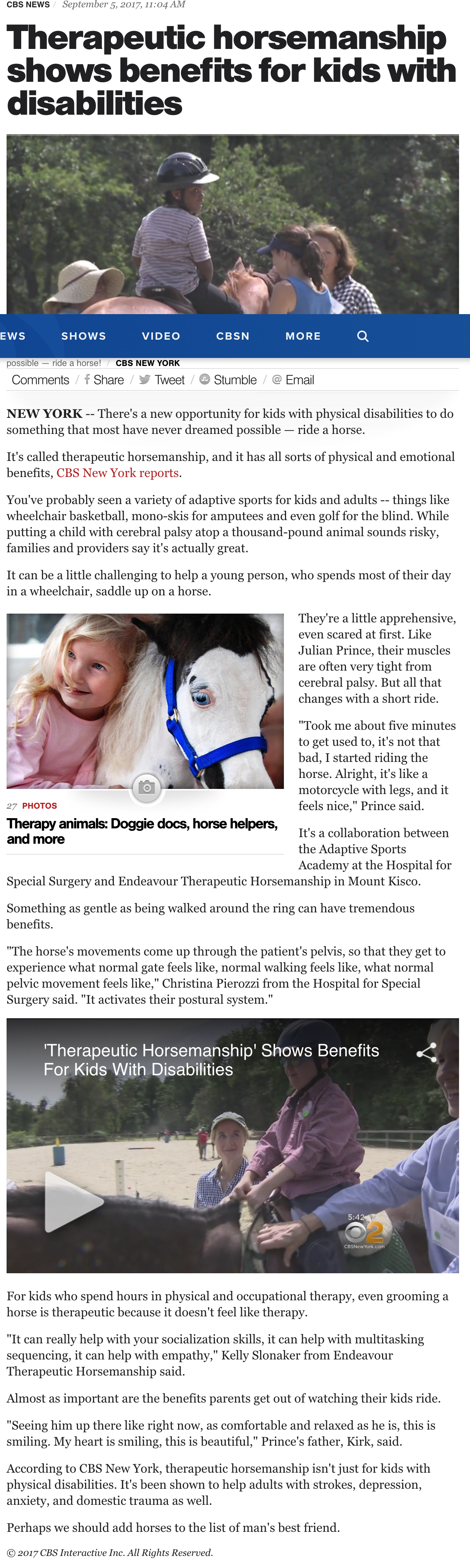 CBS produced a news segment and published an article on Endeavor's work with the Hospital for Special Surgery in September 2017.
